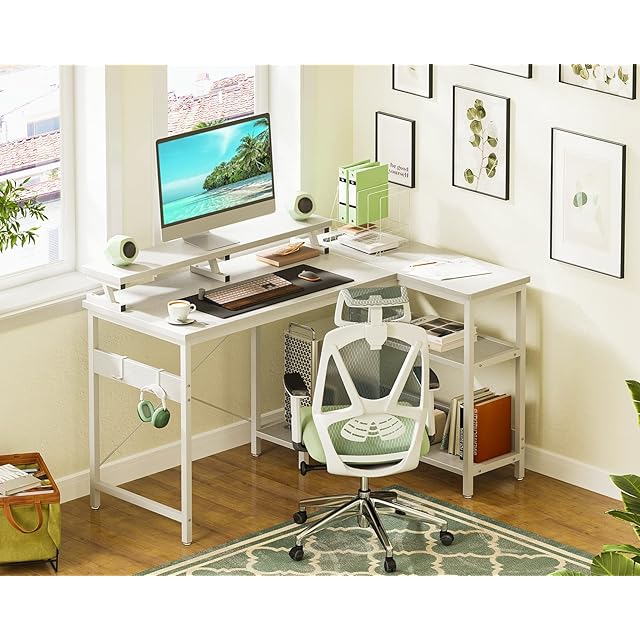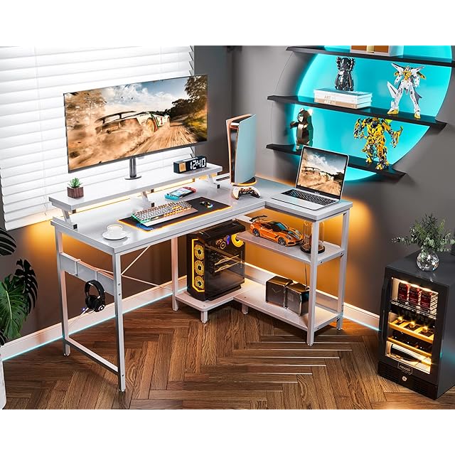 【ゲームと仕事両立】L字ゲーミングデスクは実用性が高く、ゲームプレイ、在宅勤務、勉強机、書斎机など様々なシーンで大活躍!お部屋のレイアウトに合わせてラックの位置を変更できます。モニター台を利用し、目線をあげて作業時の姿勢を改善し、テレワークが快適になり、作業効率も格段に上がります。