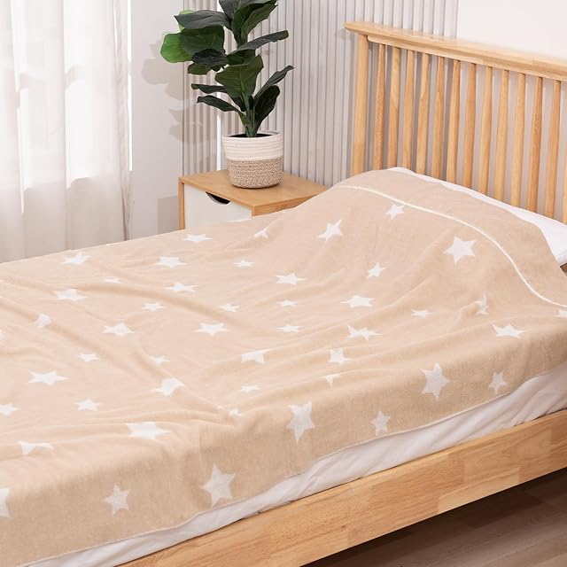 SE タオルケット ダブル 夏用 ブランケット 綿100% 可愛い 柔らかい ふんわり 吸湿速乾 抗菌防臭 洗える オールシーズン 180cmx200cm (ほし・ベージュ) 「SE Softexly」