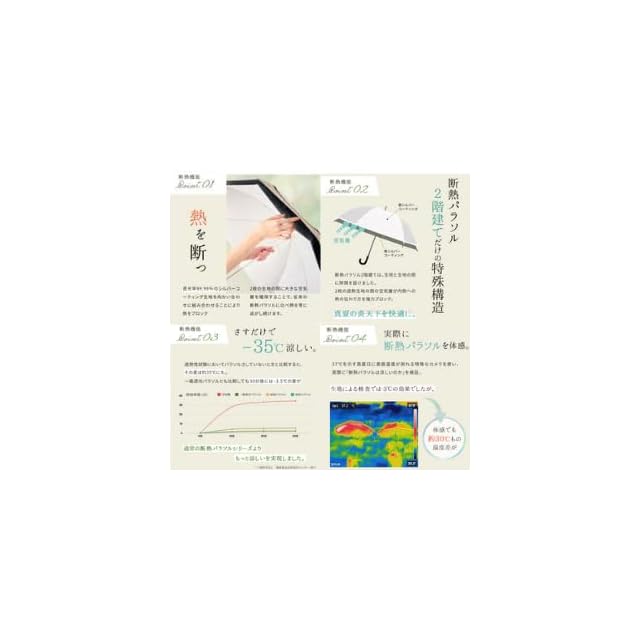 真夏の炎天下を快適に。日差しを遮るだけでなく、熱を断ちます。断熱シリーズの【2階建て日傘】傘の2階建て構造が、生地と生地の間に隙間を設け、2枚の遮熱生地の間に空気層をつくり、内側への熱の伝わりを強力ブロックします。