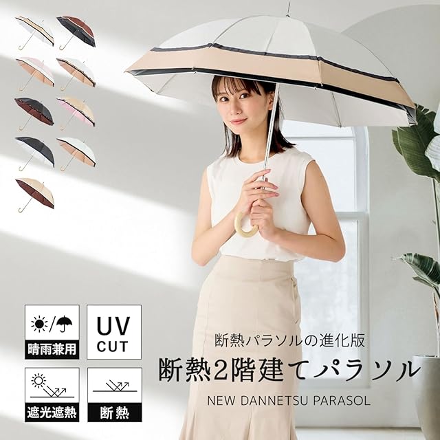 断熱 日傘 100 遮光 uvカット 2階建て [estaa エスタ] 長傘 晴雨対応 50㎝ 30168 バイカラー ペールピンク