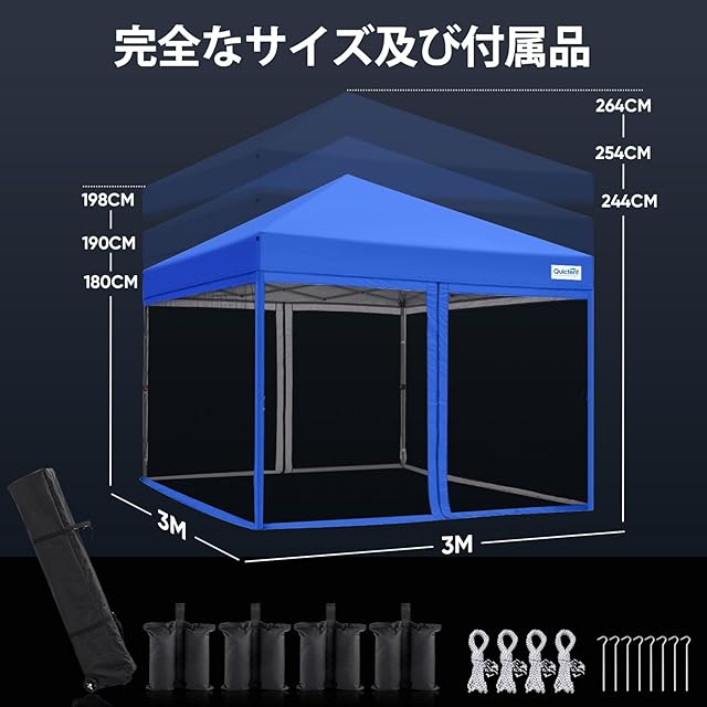 Quictent ワンタッチ タープテント 蚊帳テント 3段階調節 UVカット 耐水 蚊帳タープ スチール キャンプ アウトドア 耐水 テント キャンプ用品 虫除け対策 簡単取り付け メッシュスクリーン