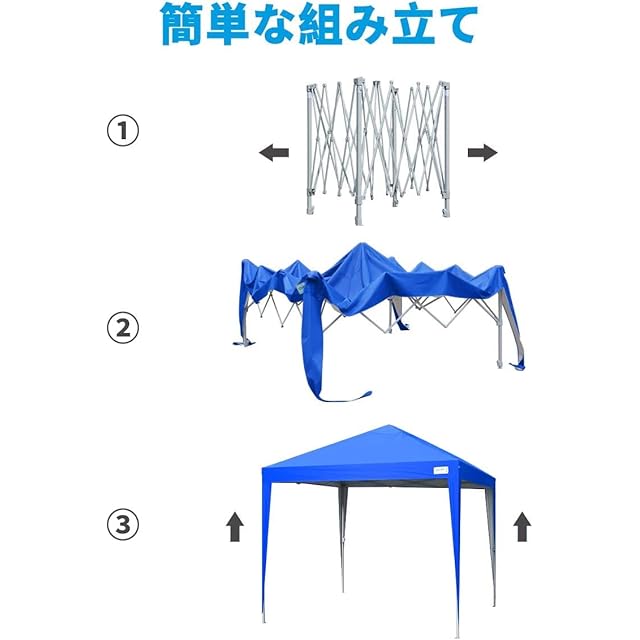 【3段階調節】テントの高さは調節可能です。必要に応じてテントの高さを調節できるため、さまざまな使用テント、屋外パーティーのピクニック、庭でのバーベキュー、ビーチでの日陰、フリーマーケットの屋台で使用できます。