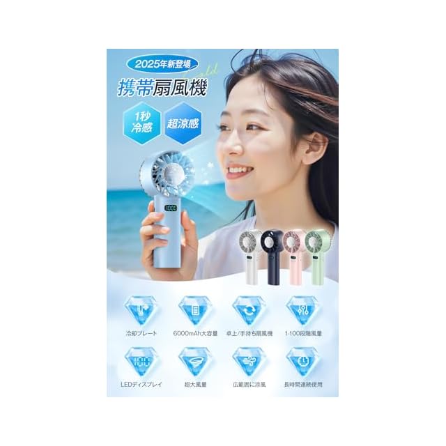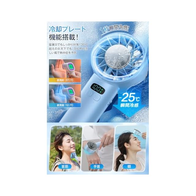 携帯扇風機 ハンディファン 【2025年モデル & -25℃瞬間冷却】 冷感プレート 手持ち扇風機 ミニファン 12枚羽根 6000mAh大容量 軽量 強力 静音 1〜100無階段風量 USB-C充電式 卓上扇風機 小型 ポータブル 冷却 ストラップ付き LEDディスプレイ 熱中症対策 アウトドア/スポーツ観戦/オフィス/夏祭りなどに適用 ギフト (ブルー)