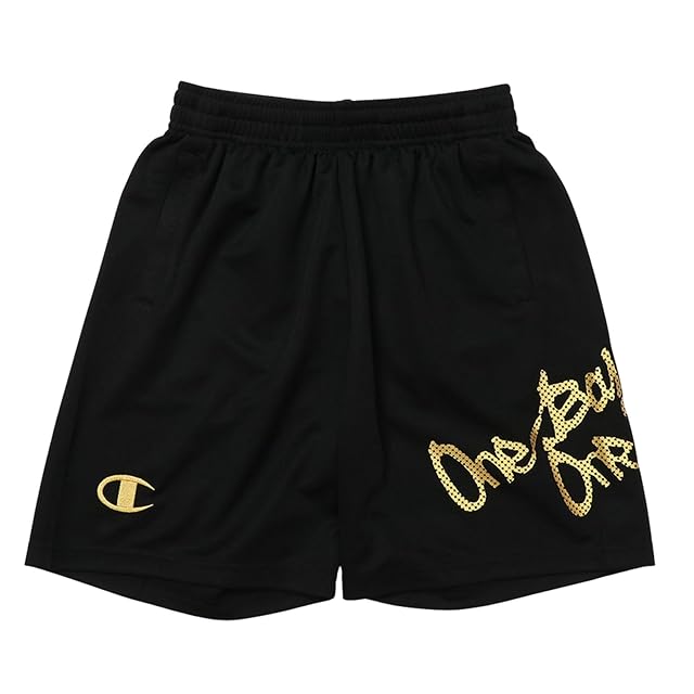 [チャンピオン] ハーフパンツ キッズ 速乾 ロゴ刺繍 ラバープリント ポケット ショーツ ダズルニット CODORLESS by POLYGIENE バスケットボール CK-ZB524 ブラックXゴールド
