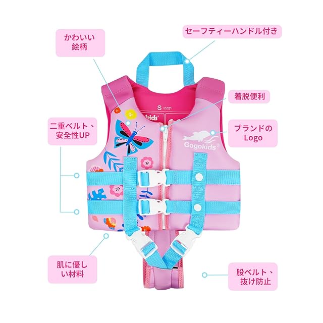 Gogokids フローティングベスト 子供用ライフジャケット 股ベルト付き 高浮力 キッズ 浮力サポート 釣り 川遊び 水遊び 海遊び