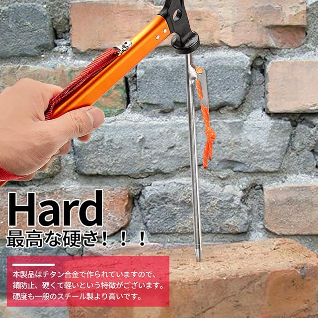 打ちやすいデザイン:強く堅実に地面へ打ち込めるのは、円柱形のヘッド形状だからこそ。ハンマーで叩く際に滑りにくいので、打撃力を確実にボディに伝えます。