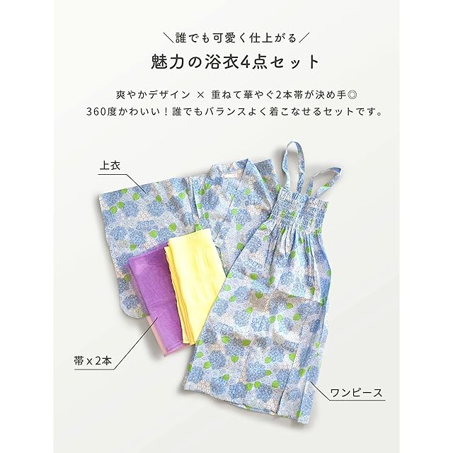 セット内容 浴衣・ワンピース・ふんわり兵児帯・シースルー兵児帯…4点セット