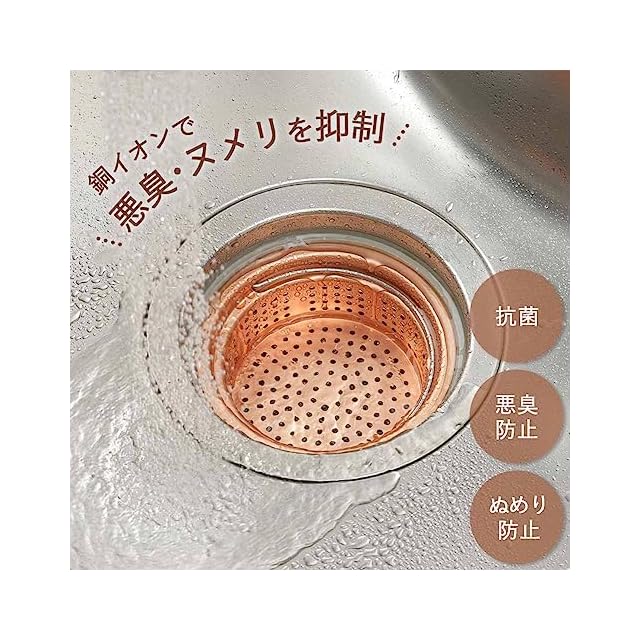 純銅製ゴミポケット 浅型 26784とは銅の殺菌作用でヌメリや悪臭を防ぎます。