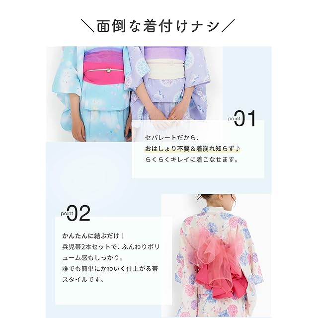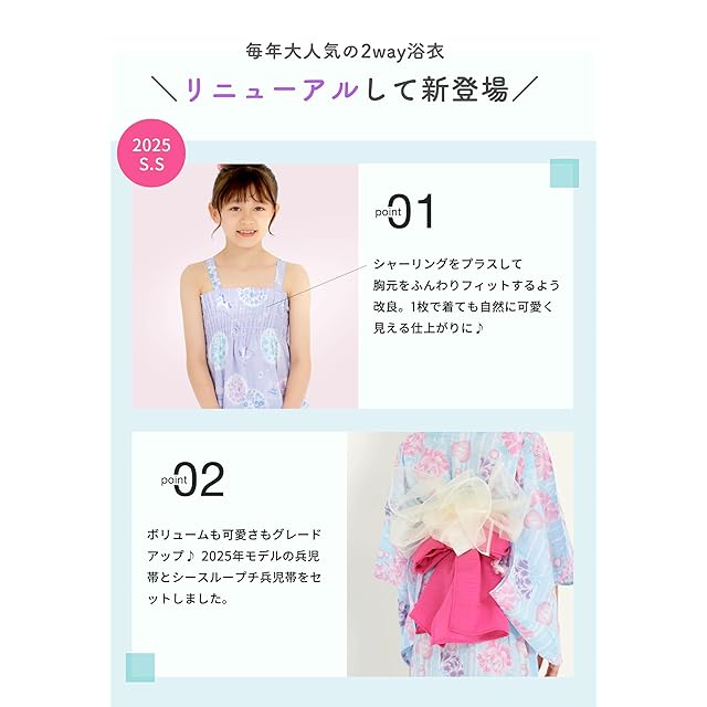 [NISHIORI] 浴衣 2way セパレート ワンピース 4点セット 女の子 キッズ 浴衣ドレス キャミソール 兵児帯2本がセット 10柄 6サイズ (10W-10, 130cm)