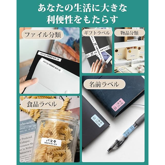 「いつでも使えるラベル貼り機」このBluetoothラベルプリンターは、学校、ビジネス、オフィス、エンターテインメントなどに使用できます。家庭では食品を分類したり、賞味期限を表示したり、物を収納したり、家計簿を支出したりすることができます。学校では学生の名前やメモをマークして使用し、オフィスで書類を分類することができます。 とにかく、応用が非常に広く、それだけでなく、このプリンターは包装が美しく、感謝祭、クリスマス、新年などの祝日に親戚や友人にプレゼントするのにも最適です。