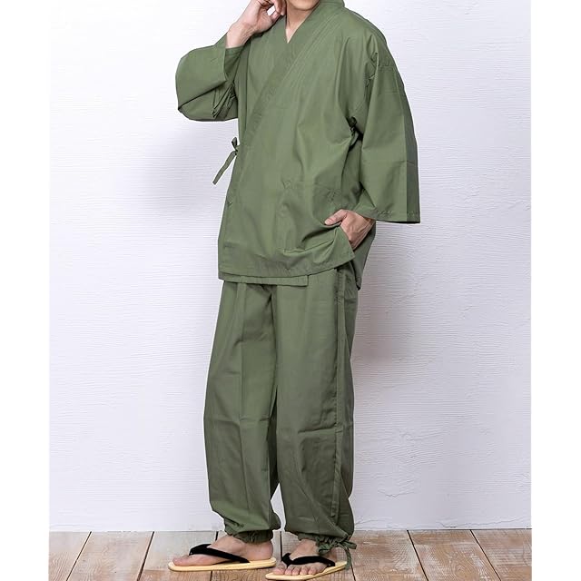 [KYOETSU] [キョウエツ] 作務衣 さむえ 男性用 メンズ 夏 冬 大きいサイズ さむい男性用 通年 作務 衣 (3L, 緑)