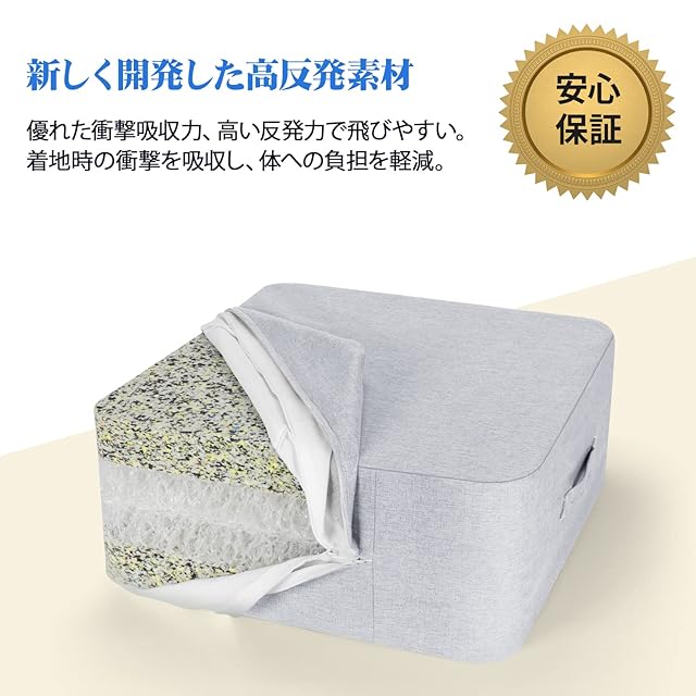 【人気アイテム:室内用トランポリン】日本開発チームに開発された最新型トランポリンです。高反発素材を採用し、おうち時間でも気軽にジャンプエクササイズが楽しめます。お部屋になじむインテリア性を備え、使わない時はクッションとしてもご利用いただけます。ストレス解消、エクササイズにぴったり、絶対に見逃したくない人気アイテム。