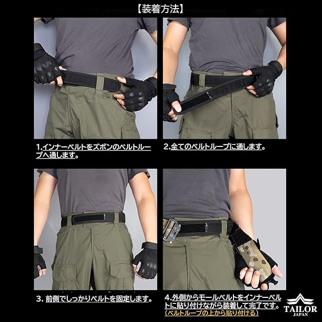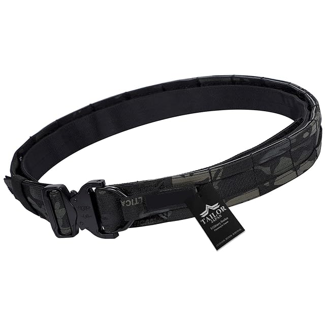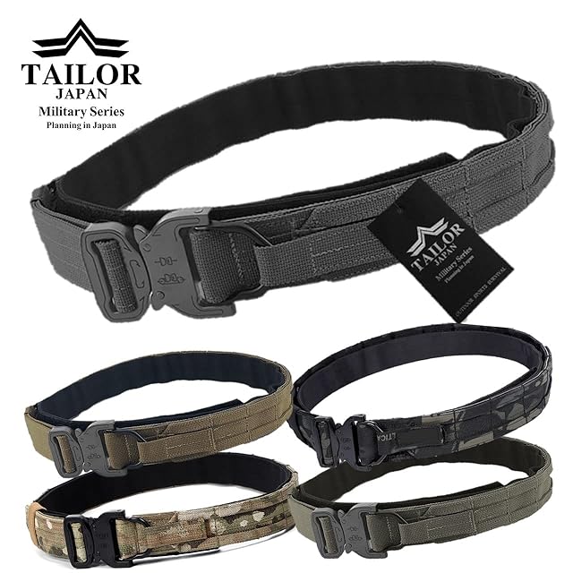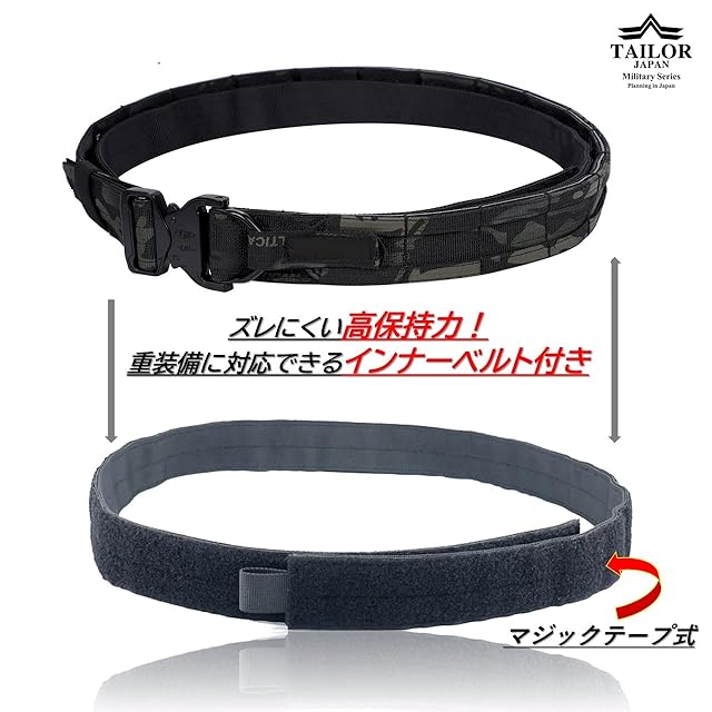 [TAILOR JAPAN] デューティーベルト ガンファイターベルト サバゲーベルト タクティカルベルト インナーベルト付き ガンベルト モールベルト コブラバックル 実物素材 (ブラックマルチカム, L)