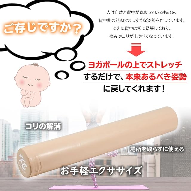 サイズ:(約)φ15×98cm、重量:(約)650g、カラー:ブラック、ブルー、ベージュ、パープル、グリーン、ブラウン、アクアブルー、ピンク、レッド、グレージュ、オレンジ、イエロー、材質:カバー;PVCレザー、芯材;EVA、セット内容:ポール