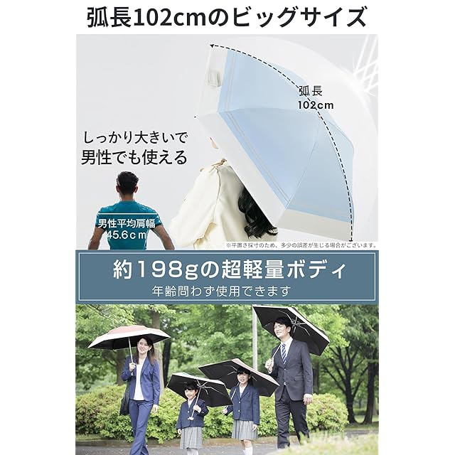 ☂【大きいサイズ&雨の日も使える日傘】一般の日傘より大きいサイズに設計されました。✅傘面弧長を102cmに拡大し、体全体をしっかりカバーできる日傘兼用雨傘です。 メンズにも使える傘です。そして、⭐品質の安定性が高いポンジー生地に超撥水加工を施し、雨水が染み込まず、軽く一振りするだけで転がり落ちます。雨の日も予想外に雨が降ってきた時や、強い日差しが降り注ぐ日でもこちらの晴雨兼用 折り畳み傘があれば安心❗❗
