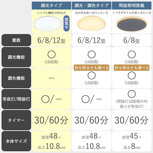 size:2)8畳用 style:a)調光タイプ: