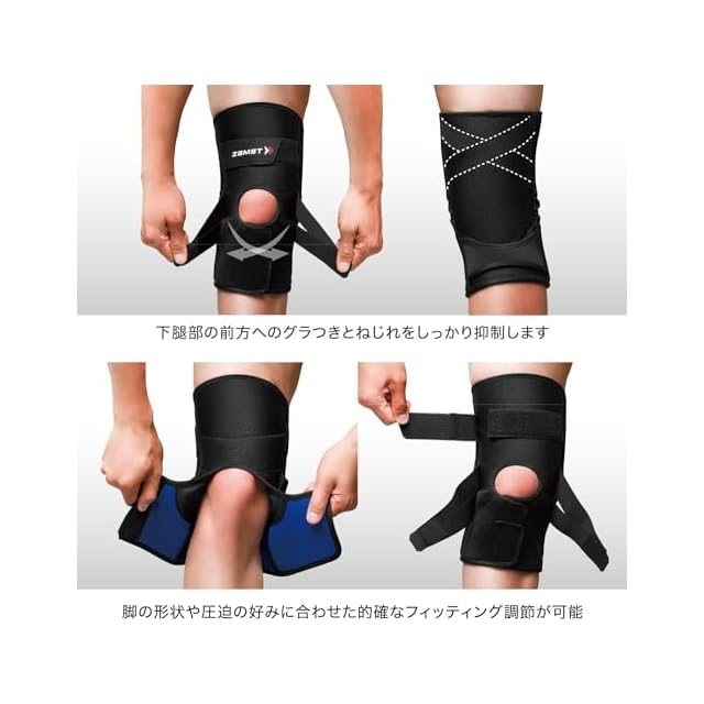 【しっかりとしたサポート力と快適なフィット感を実現】しっかりとした圧迫が可能なクローズ設計をベースに、ヒザ下部分と太ももストラップをオープン設計にすることで、脚の形状や圧迫の好みに合わせた的確なフィッティング調整が可能です。 また本体前面に採用した伸びやすくパワーのあるクロロブレンが、圧迫しながらも、動きやすさを両立。ズレにくく、プレーを妨げません。
