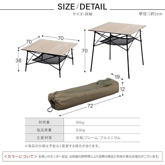 アイリスオーヤマ アウトドアテーブル ロールテーブル ウッドグレイン 幅70 折りたたみ式 テーブル 軽量 コンパクト収納 アウトドア キャンプ 高さ調節可 多機能 ギフト プレゼント