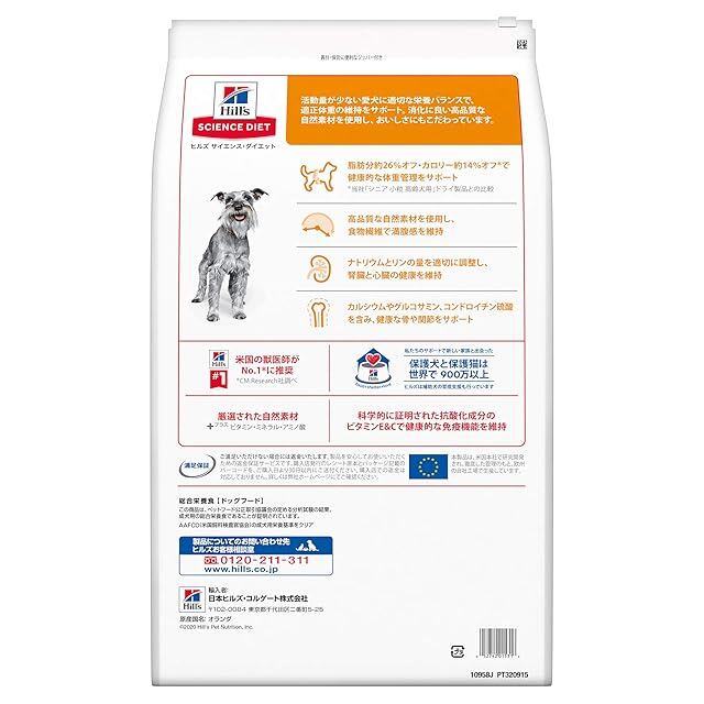 商品名:ヒルズ サイエンスダイエット ドッグフード シニア ライト 小粒 7歳以上 チキン 12㎏ 高齢犬用 ドライ 肥満