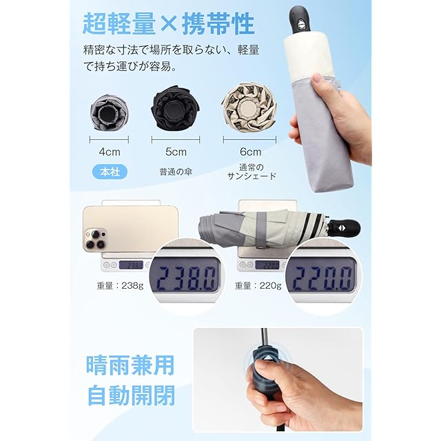 折りたたみ日傘 ワンタッチ自動開閉 携帯便利 耐風撥水 晴雨兼用 携帯便利 男女兼用 母の日 お祝い 誕生日プレゼント ,折りたたまれた際の厚さはわずか4cm、長さは25cm、重量は約220gです。日傘は直射日光を遮り、肌を紫外線から効果的に守ります。