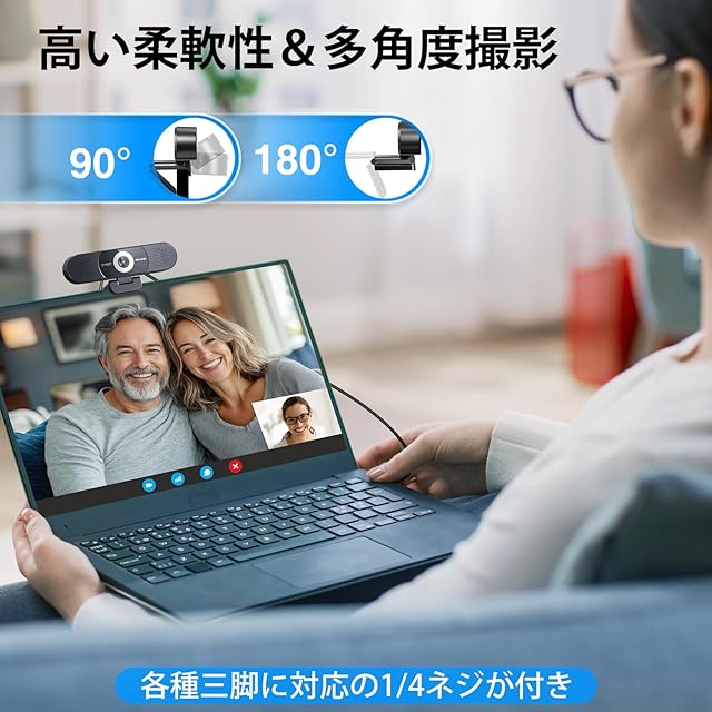 【4K UHD超高解像度&視野角60°〜98°調整可能】 800万画素の4Kカメラを搭載し、4K@30fpsで鮮明かつ滑らかな映像を提供します。この4Kウェブカメラは細部までクリアに映し出し、画面内のすべての要素を高精度にキャッチします。視野角(FOV)は60°〜98°まで調整可能で、参加者全員をフレームに収めることができ、臨場感のある映像を実現します。