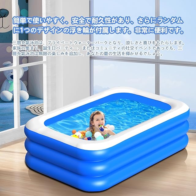 【折りたたみ式】折りたたみ式のプールなので、空気を全部抜くあと、引き出しやたんすに楽に収納できます。また、持ち運びできるプールなので、ベランダ、客間、芝生、またはその他の屋外の場所で遊べます。暑い夏の間に、子供は涼しく遊びます。子供と大人に適し、男女兼用のプールです。ご注意:18歳未満のお子様は、必ず大人の伴にお遊びください。