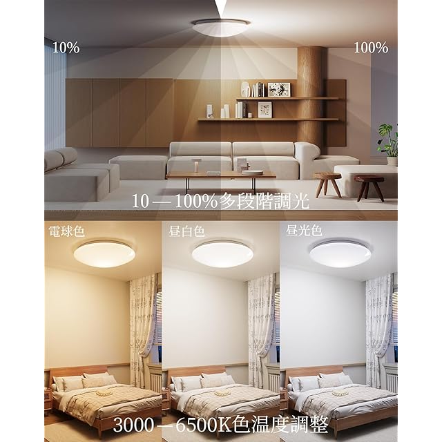 ⭐【12段階調光・調色】調光(明るさ)はお好みやシーンに合わせて自由に調整可能です。調色は、冷たい印象の昼光色から温かみのある電球色まで幅広く対応。生活リズムに合わせて明るさと色温度を細かく調整し、快適で素晴らしい生活空間を楽しみましょう。