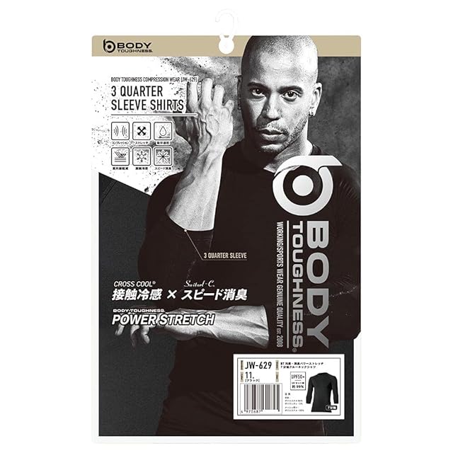 おたふく手袋 夏用インナー 7分袖 丸首 [接触冷感 吸汗速乾 消臭 コンプレッション UVカット メンズ] JW-629 ブラック M