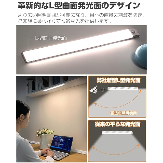 人感センサーライト 室内 LED バー ライト 充電式 3000mAh キャビネットライト 60cm 電球色 超薄型設計 手元灯 マグネット LEDライト 配線工事不要 省エネ 長寿命 高感度 高輝度 部屋 玄関 廊下 キッチン 棚