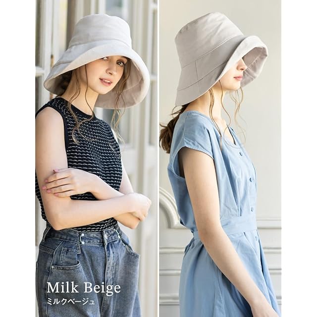 [Loo&c] [ルーアンドシー] 遮光100% UVカット ハット 帽子 レディース 大きいサイズ かぶる日傘 つば広 UV シャルマンハット 小顔みせ 紫外線対策 接触冷感 サイズ調整可能 あご紐付き (ミルクベージュ, XL(61-63cm))