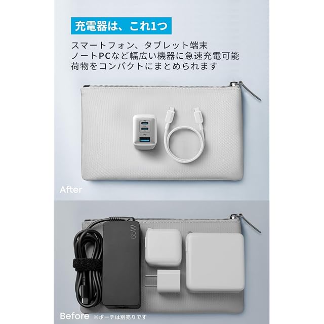 3台同時に充電可能:スマートフォン、タブレット、MacBook、USB PD対応のWindowsノートPCなど、多種多様なデバイスを一度に充電可能。PowerIQ 3.0 (Gen 2) を 搭載した2つのUSB-CポーとAnker独自技術PowerIQ搭載のUSB-Aポートを備えています。3ポート利用時の合計最大出力は64Wと高出力。機器毎に異なる充電器を持ち運ぶ必要はありません。