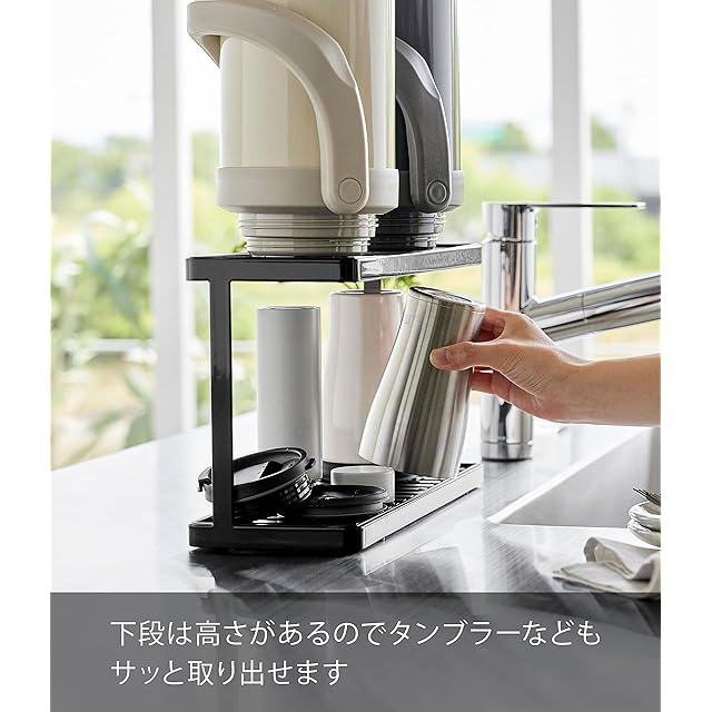 山崎実業(Yamazaki) トレー付き ジャグボトル & グラススタンド 2段 ブラック 約W36×D12×H19.3cm タワー tower 水切りラック スリム グラススタンド 3715