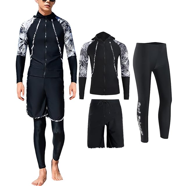 [Hilarocky] ラッシュガード メンズ 水着 長袖 前開き フィットネス水着 サーフパンツ レギンス 3点セット UVカット UPF50+ スイムウェア 水泳 水陸両用 温泉 吸汗速乾 ブラック