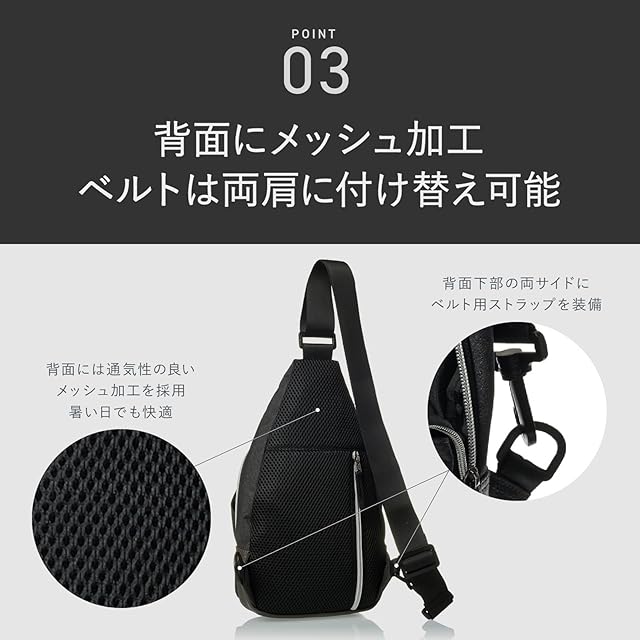 【嬉しいメッシュ・クッション素材】ショルダー部分には厚めのクッション素材を採用。 重い荷物を入れた際でも肩の負担を軽減します。背面にはメッシュ素材を使用しています。 背負っていても蒸れにくいので夏でも涼しく、1年中あなたの生活に寄り添います。