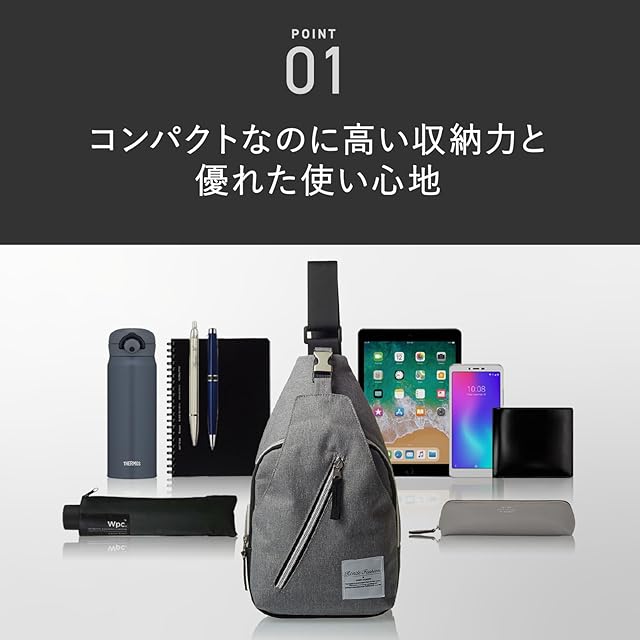 [RONDE] 斜めがけ ボディバッグ ショルダーベルト iPadmini収納可 メンズ (グレー)