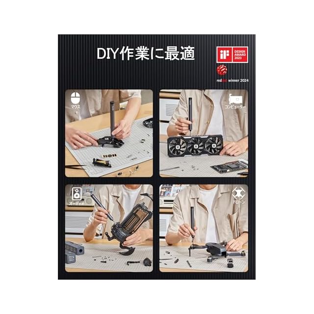 デザイン賞受賞・注目の一本:2023年のiFデザイン賞、2024年のレッドドット・デザイン賞を受賞し、各種メディアでも紹介されたモデル。スタイルと実用性を兼ね備え、DIYや創作活動を楽しむ方にぴったりの電動精密ドライバーです