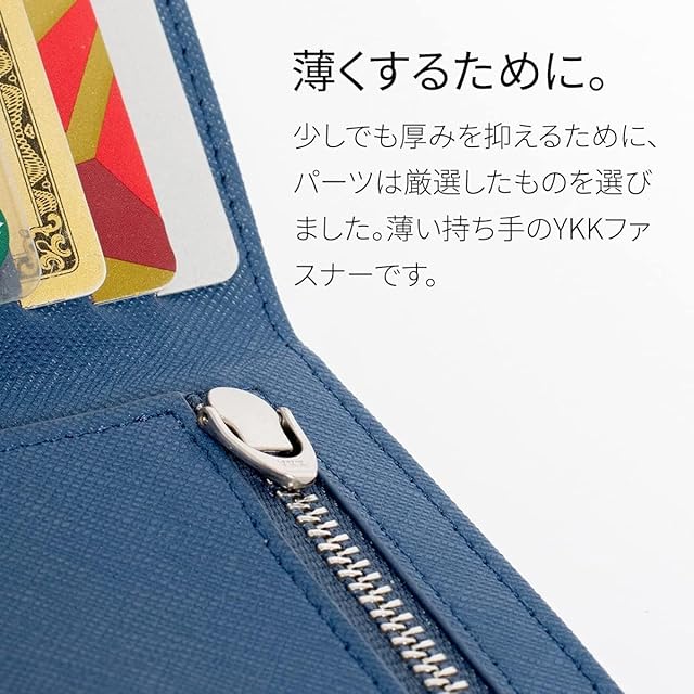 [Dom Teporna] 極薄 二つ折り財布 メンズ 薄い 牛革 レザー YKKファスナー シンプル お札入れ 小銭入れ カード入れ 薄型 財布 レディース ネイビー