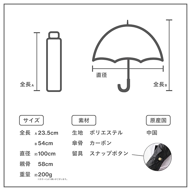 【毎日持ち歩いておきたい軽さ】 高密度の軽量生地と丈夫で軽量のカーボン素材の傘骨を採用。天候が不安定なときにも持っておきたい1本です。