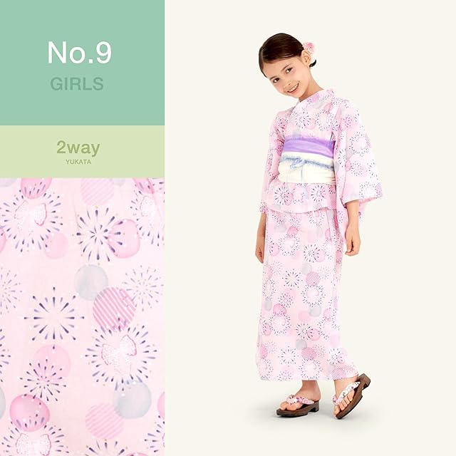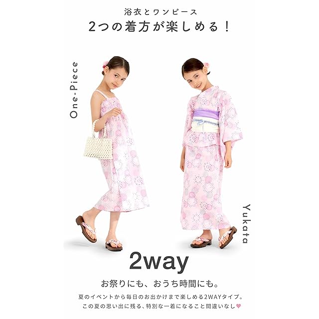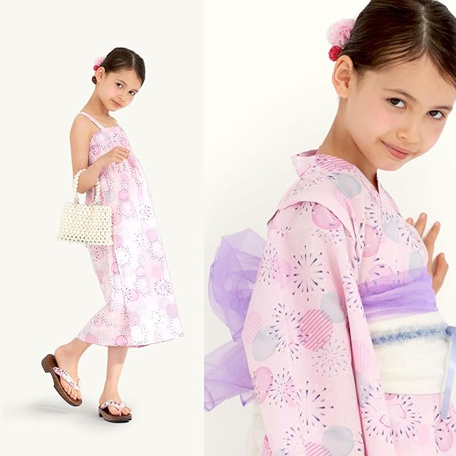 [NISHIORI] 浴衣 2way セパレート ワンピース 4点セット 女の子 キッズ 浴衣ドレス キャミソール 兵児帯2本がセット 10柄 6サイズ (11W-9, 140cm)