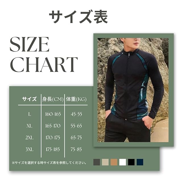 [wechose] ラッシュガード 水着 メンズ 上下セット フィットネス水着 3点セット ジップ アップ 長袖 前開き スイミング サーフパンツ レギンス ビーチ 水泳パンツ UVカット UPF50+ 温泉 競泳 通気性 水陸両用 吸汗速乾9826-green-2XL