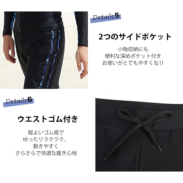 【UVカット】UPF50+生地(肌に有害な紫外線を98%以上カット)使用しているため、「着るだけ」で日焼け予防を完全に実現。足首丈レギンスは水を通さず、肌にベタつきにくく、虫刺されやクラゲ対策にも。けがを防止、身を守る為にも履いているだけで安心感UP!