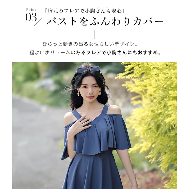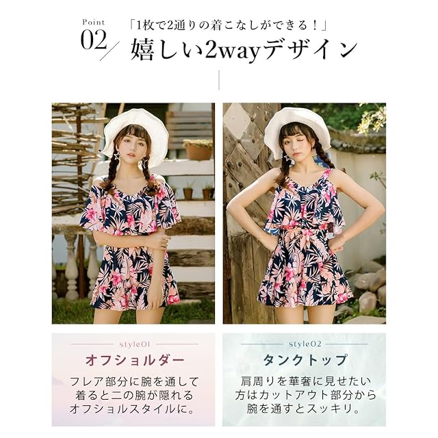 TeddyShop 水着 レディース 体型カバー ワンピース 大人 オールインワン オフショルダー フレア 大きいサイズ hys1515 2XL(13号) L:ピンクフラワー