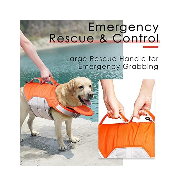 【反射素材を使用】サイドライン反射材料と鮮やかな色で、居場所をすぐわかる、愛犬の水遊びの安全を守ります、海や川での水遊びの事故を防ぐため犬用ライフジャケットです。