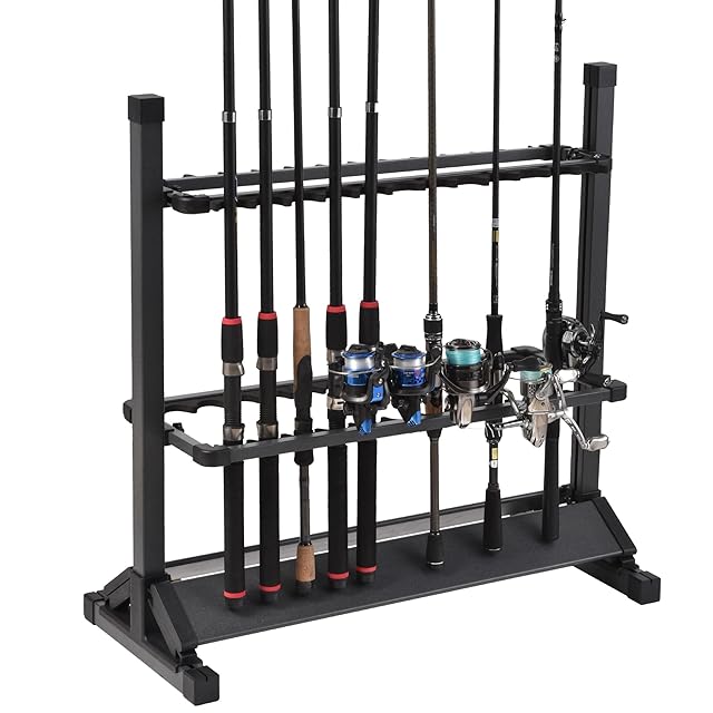 【竿スタンド】アルミ製の釣り竿立ては耐久性の高さがポイントで、変形・劣化しにくく、長く愛用できます。また、アルミは軽量で移動が楽なのも魅力のひとつです。素材の持つ独特の光沢感があり、機能美を感じさせる収納に仕上がりやすいです。
