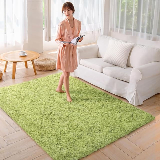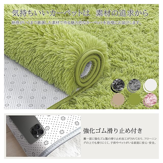 Beddiny カーペット ラグ ラグマット 洗えるラグ【中層:極厚30D高密度ウレタン 独自技術の抗菌防臭加工】絨毯 オールシーズン快適に使用 滑り止め付き 高密度シャギーラグ グリーン 200×250cm