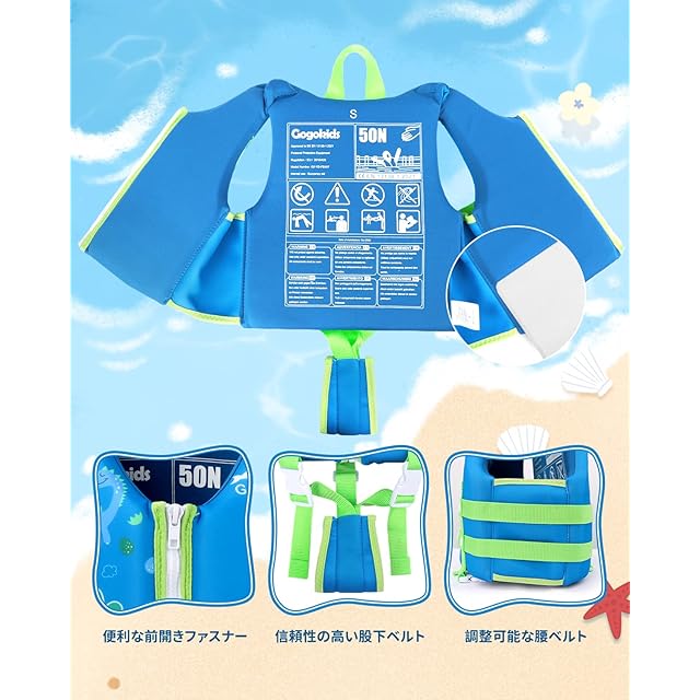 Gogokids フローティングベスト 子供用ライフジャケット 股ベルト付き 高浮力 キッズ 浮力サポート 釣り 川遊び 水遊び 海遊び L
