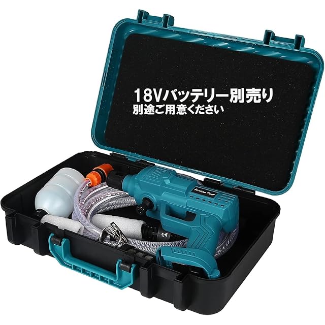 アルチザンツール 【日本ブランド】自吸式高圧洗浄機HP-02 青 コードレス マキタ18Vバッテリーに使用 ONスイッチ固定機能 水圧強化 吐出水量UP 収納ケースの最小軽量化 水吸上げ部品改良 洗車機 強力噴射 電動工具 軽量 コンセント不要 愛車 庭 窓 階段 外壁など マキタ互換品