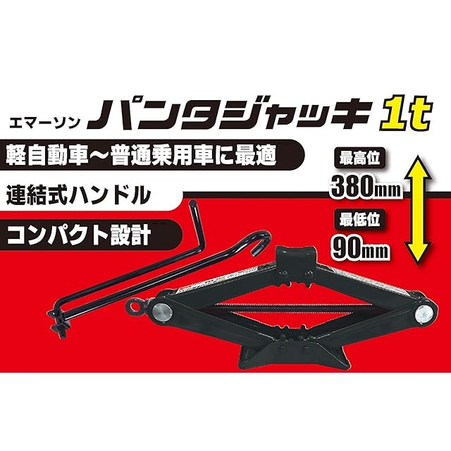 エマーソン(Emerson) 手動式パンタジャッキ 1t SG規格適合品 タイヤ交換 パンク修理 チェーン脱着 コンパクトに収納可能 【最低位】90mm【最高位】380mm 軽自動車~普通乗用車・ミニバン対応 EM-505
