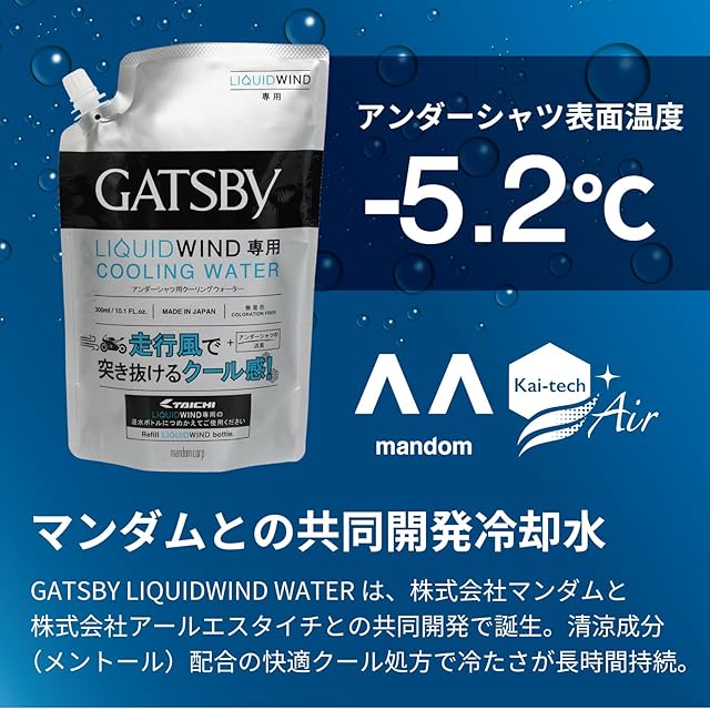 LIQUIDWIND(リキッドウインド)の電動送水システムキット。LIQUIDWINDは、腰に装着したボトルから専用設計の冷却水をアンダーウエアに送水し、走行風を受けることで胸部と背中を集中冷却します。 冷却水LIQUIDWIND WATERは、化粧品メーカーである株式会社マンダムと株式会社アールエスタイチとの共同開発で誕生。2024年モデルより送水システムを電動化。5分ごとに自動送水するオートマチックモードにより、走行中もボタン操作なしで冷却水を送水し、気化熱冷却を促します。