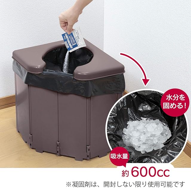 【凝固剤】約600ccの水分を固める。開封しない限り使用可能(高温多湿の場所では保管しないでください)